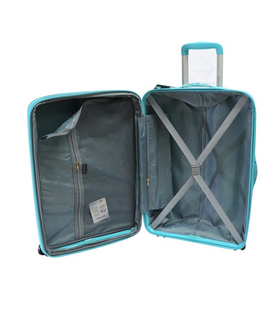 Чемодан закривається на водотталківающую блискавку, всередині передбачені притискні ремені для багажу в одному відділенні, друге закривається текстильної кришкою на блискавки.