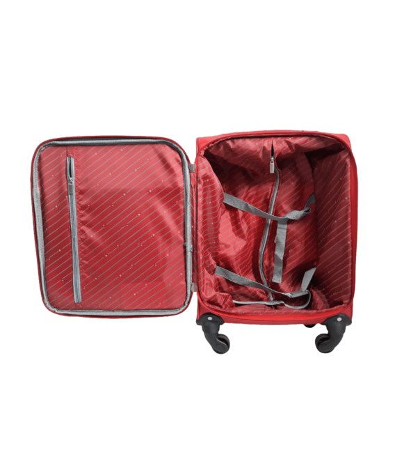 Усередині валіз одне відділення з внутрішніми ременями кріплення багажу і закривається на блискавку.