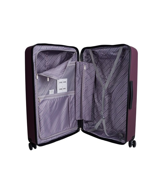 Їх функціональний інтер'єр на підкладці пропонує продуману і практичне компонування з двома відділеннями, одне з яких обладнано гнучким розподільчим лотком з двома сітчастими кишенями для зберігання білизни або дрібних аксесуарів, а інше - двома еластичними перехрещеними ременями для збереження.Білизну складено і на місці під час подорожі.