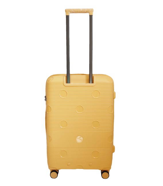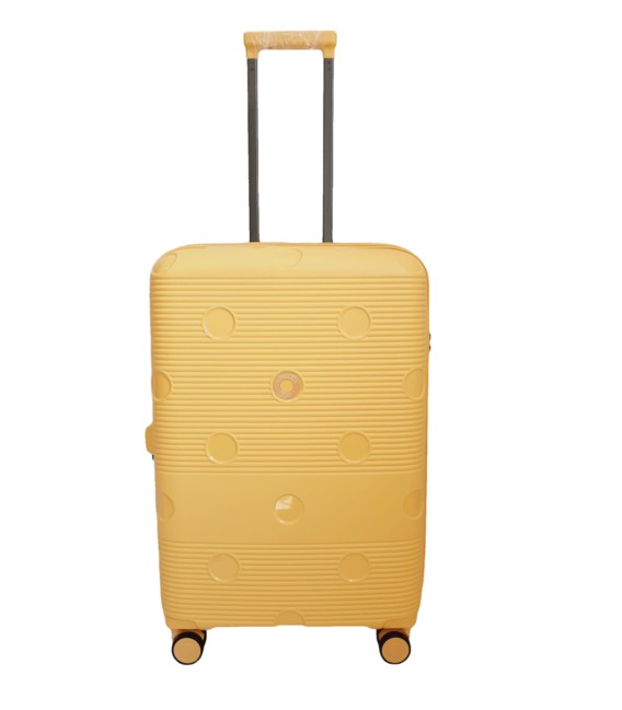 Комплект легких пластикових 4-колісних валіз жовтого кольору великого, середнього та малого розміру Airtex Jupiter.