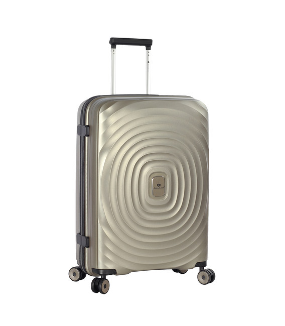 Безшумне і плавне переміщення забезпечують поліуретанові колеса на підшипниках, що обертаються на 360 град, надаючи валізах додаткову маневреність і даючи можливість переміщати його у вертикальному положенні.
