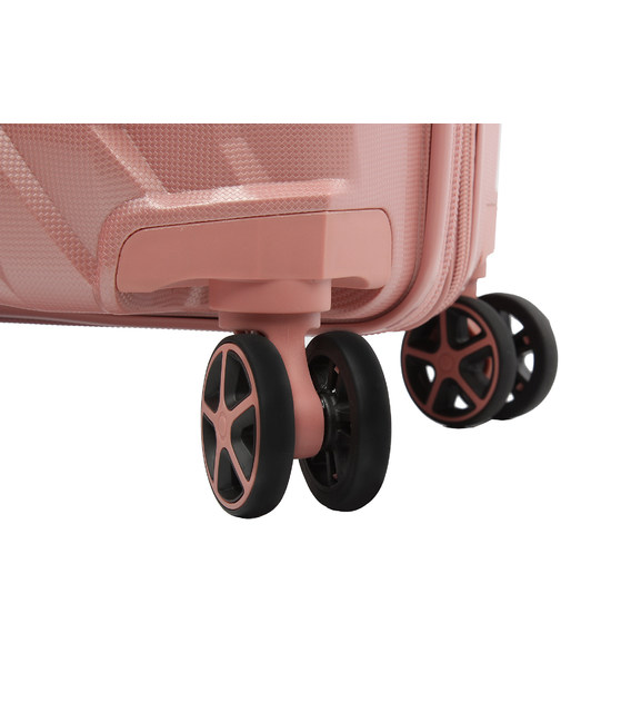 Безшумне і плавне переміщення забезпечують поліуретанові колеса на підшипниках, що обертаються на 360 град, надаючи валізах додаткову маневреність і даючи можливість переміщати його у вертикальному положенні.