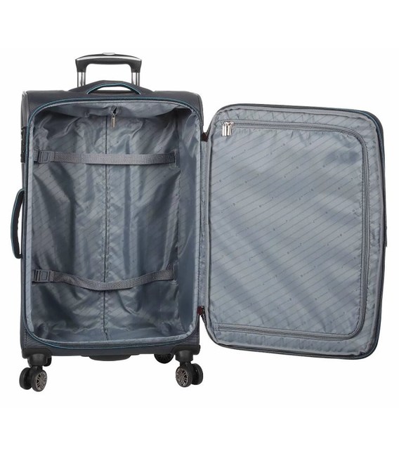 Матеріал валізи міцний нейлон 900D. Дана модель дуже містка, а також має додаткову блискавку розширювач. Всередині великий лоток з ременями фіксаторами, а також кишеню на дверцятах. На передній стінці безліч додаткових кишень.