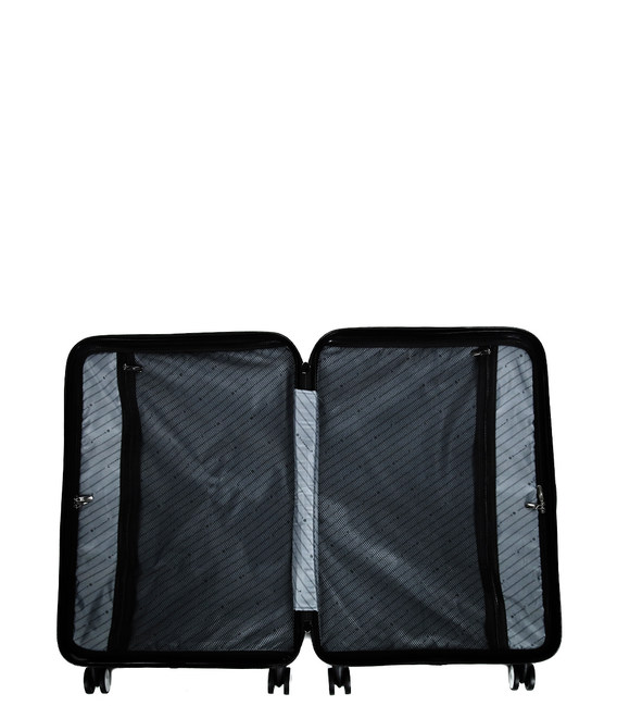 Усередині валіз є 2 відділення, одне з внутрішніми ременями кріплення багажу, інше закривається на блискавку.