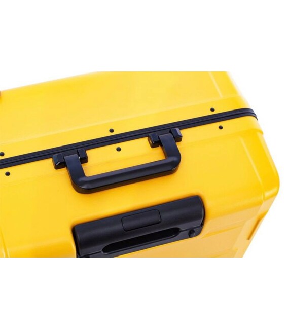 -У кожної валізи є висувна алюмінієва ручка з дворівневим телескопом і дві додаткові (бічна та верхня) для перенесення багажу.