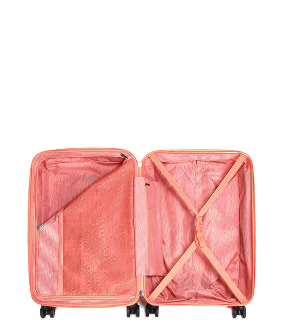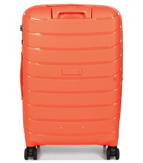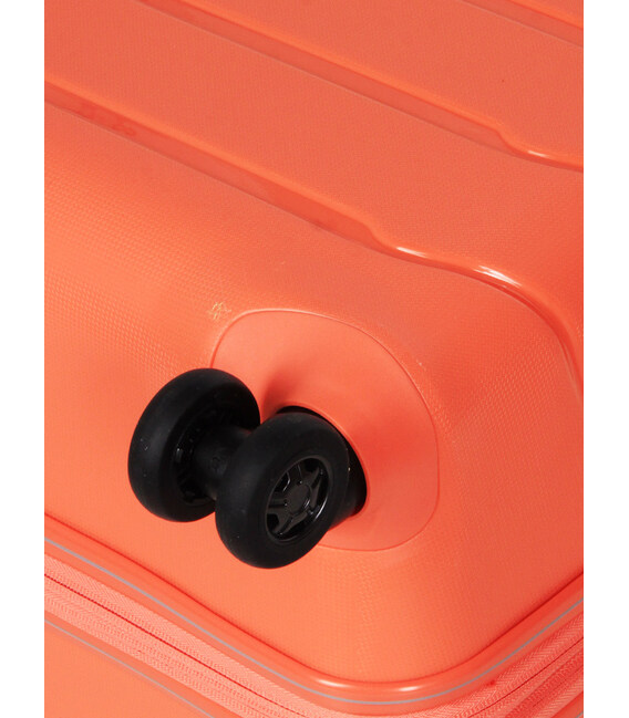 - Матеріал корпусу -100% поліпропілен, один з кращих матеріалів застосовуваних при виробництві дорожніх валіз. Представлена модель - розробка і гордість компанії. Основна частина корпусу валізи армована ниткою зі скловолокна - найвища стійкість до деформації і стирання.