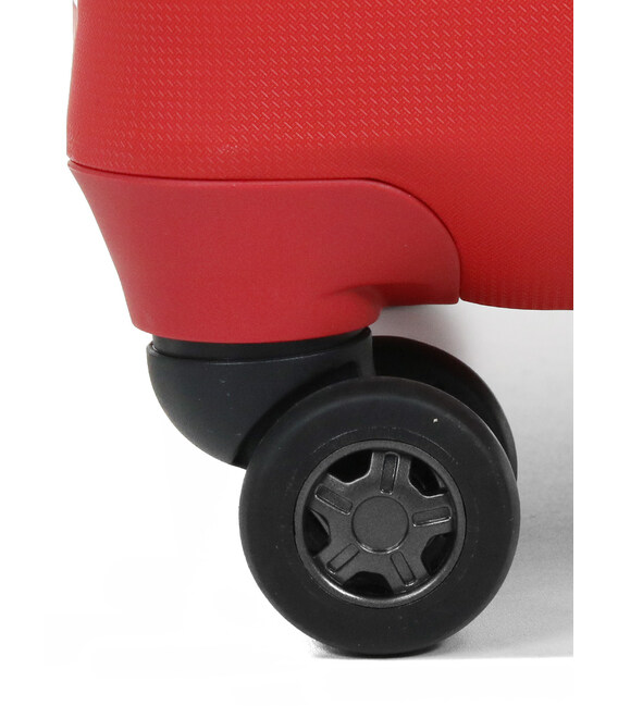 - 4 подвійних колеса з основою з ТПУ (Термополиуретан) кріпленням зі сталі та інноваційної (без шурупів) системою кріплення колісного блоку до корпусу (максимум надійності при експлуатації і здачі в багаж).