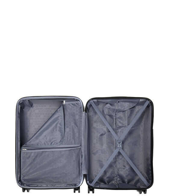 Валіза має текстильну перегородку на блискавці, яка поділяє внутрішній простір на два основні відділення, перегородка має сітчасту кишеню на блискавці.