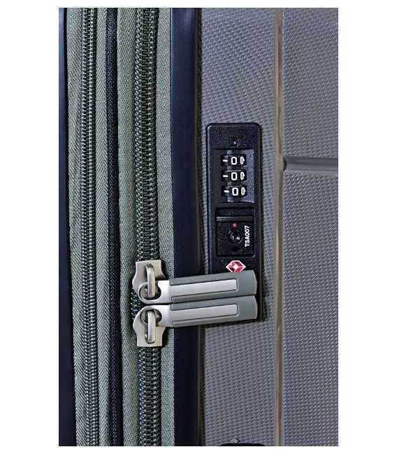 Закриваються за допомогою повзунка і захищені кодовим замком TSA 007 (3 цифри), що дозволяє спокійно подорожувати по США. Усередині вони роздвоєні розділений на 2 відсіку. Перший має бічну кишеню і 2 регульованих ремінця, що зручно для зберігання одягу під час подорожей. Друга оснащена гнучким отделітельний лотком на блискавки і сітчастою кишенею. Він пропонує можливість зберігання інших речей і запобігання їх перевертання під час бурхливих подорожей.