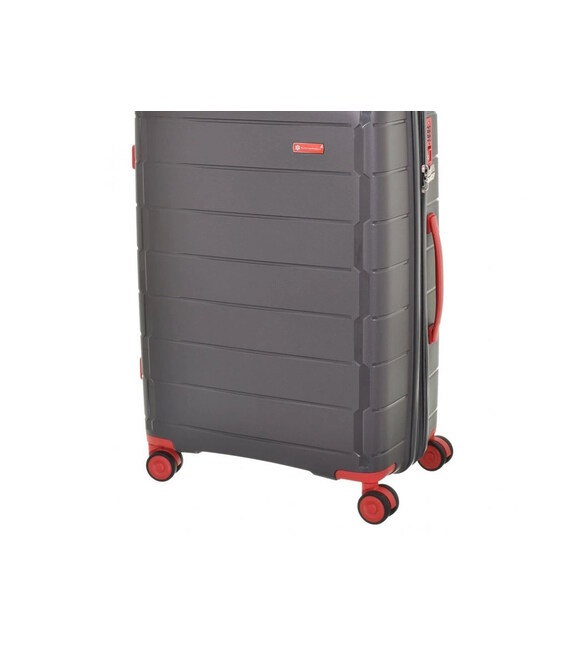 Матеріал валізи 100% поліпропилен стійкий до ударів та подряпин.