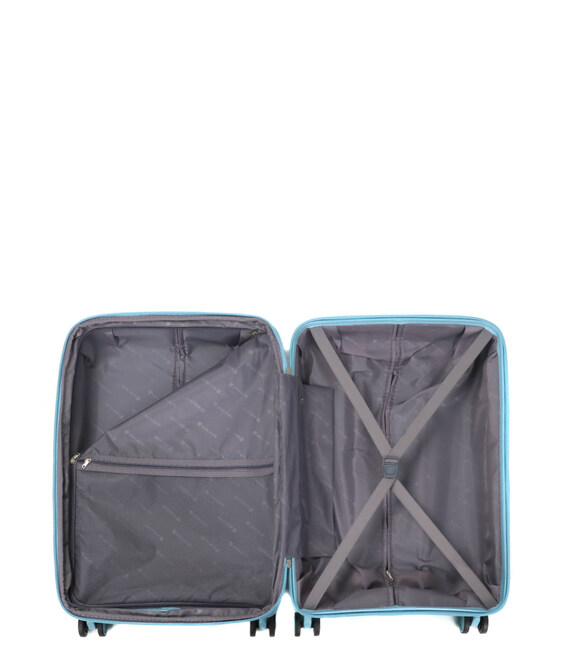 Валізи Worldline Abidjan мають 2 відділення з повною підкладкою, що дозволяють зберігати делікатну білизну та об'ємні речі окремо один від одного. Роман, який зараз читається, можна покласти у внутрішню сітчасту кишеню. Шнури живлення та інші необхідні речі можна зберігати в невеликій кишені на блискавці. Щоб зменшити кількість непривабливих складок, добре складену білизну можна утримувати на місці за допомогою двох еластичних ременів, а також гнучкого роздільника на блискавці.