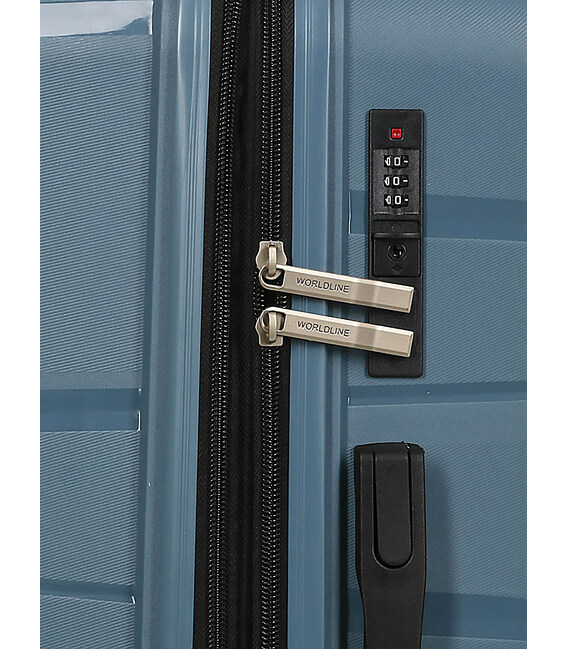 Валізи Worldline Santa Pola можна буксирувати кінчиками пальців завдяки 4 подвійним колесам і двотрубній телескопічній ручці з регульованим положенням залежно від розміру власника. Для зручного носіння в руці всі вони оснащені гнучкою і м'якою високою ручкою. Збоку є настроюваний кодовий замок із зашифрованим кодом для більшого спокою під час поїздки. На 2 найбільших моделях жорсткі бічні посилення забезпечують додатковий захист від можливих ударів.