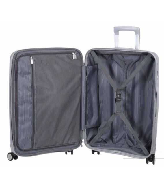 - Матеріал корпусу -100% поліпропілен, один з кращих матеріалів застосовуваних при виробництві дорожніх валіз. Представлена модель - розробка і гордість компанії. Основна частина корпусу валізи армована ниткою зі скловолокна - найвища стійкість до деформації і стирання.