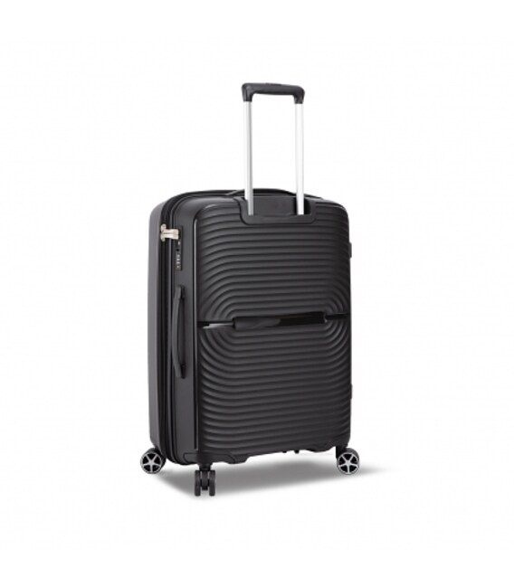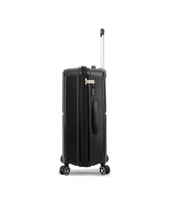 Легка алюмінієва ручка висувається та фіксується у кількох зручних положеннях — для комфортного керування валізою під будь-який зріст.