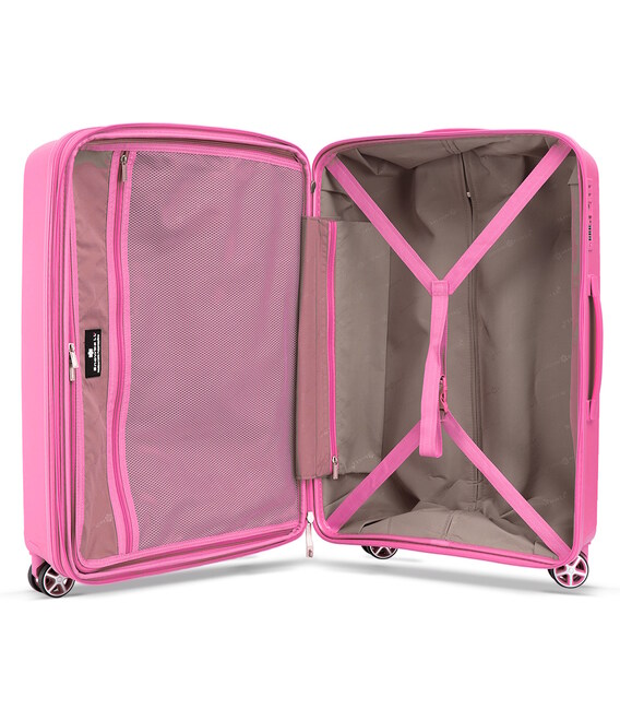 Валіза має два основні відділення з фіксуючими ременями та перегородкою на блискавці. Між відділами розташована додаткова кишеня для аксесуарів та дрібниць.
