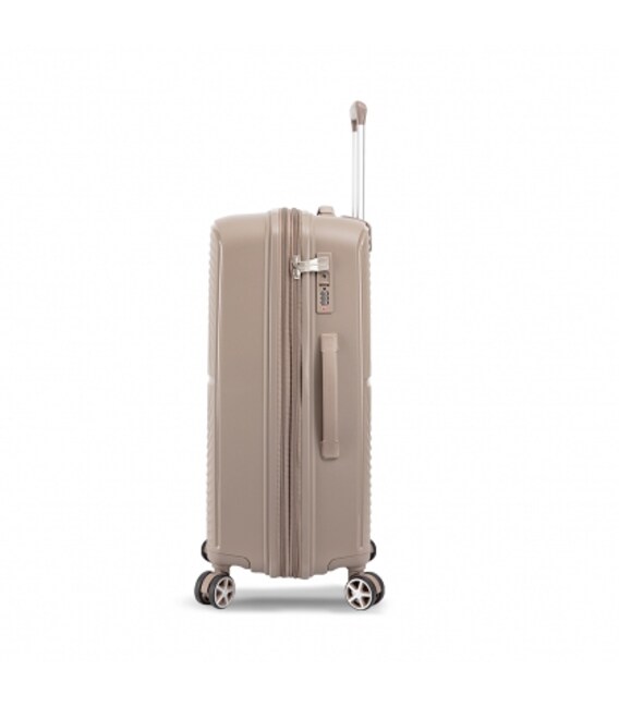 Легка алюмінієва ручка висувається та фіксується у кількох зручних положеннях — для комфортного керування валізою під будь-який зріст.