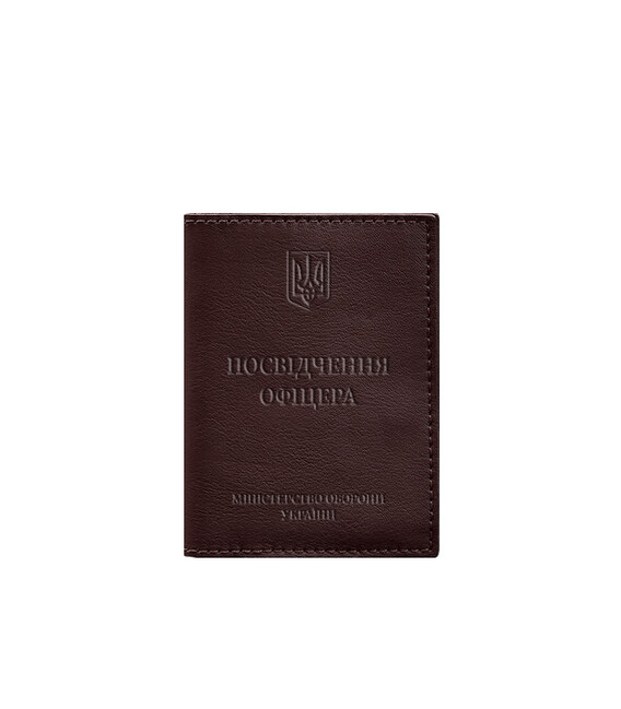 Шкіряна обкладинка на посвідчення офіцера від бренду БланкНот спеціально розроблена для дбайливого зберігання вашого документа. Пошита з високоякісної натуральної шкіри краст Ця шкіра дуже міцна і довговічна. Тиснення на лицьовій стороні обкладинки повністю дублює оригінальний бланк документа. Вгорі розташований герб України, посередині міститься напис «Посвідчення офіцера»