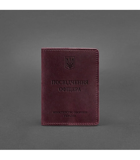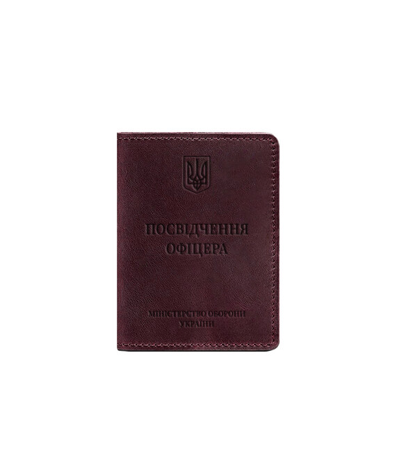 Шкіряна обкладинка на посвідчення офіцера від бренду БланкНот спеціально розроблена для дбайливого зберігання вашого документа. Пошита з високоякісної натуральної шкіри crazy horse. Ця шкіра з вінтажним ефектом дуже міцна і довговічна. Тиснення на лицьовій стороні обкладинки повністю дублює оригінальний бланк документа. Вгорі розташований герб України, посередині міститься напис «Посвідчення офіцера»