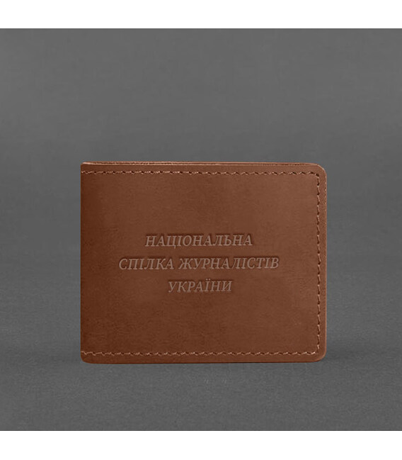 Шкіряна обкладинка на посвідчення журналіста від бренду БланкНот спеціально розроблена для дбайливого зберігання вашого документа. Пошита з високоякісної натуральної шкіри crazy horse. Ця шкіра з вінтажним ефектом дуже міцна і довговічна. На лицьовій стороні обкладинки розташоване тиснення - “Національна спілка журналістів України”.
