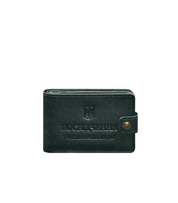 Шкіряна обкладинка- портмоне для посвідчення учасника бойових дій (УБД) Зелена