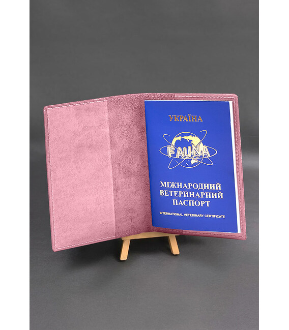 Шкіряна обкладинка на ветеринарний паспорт рожева