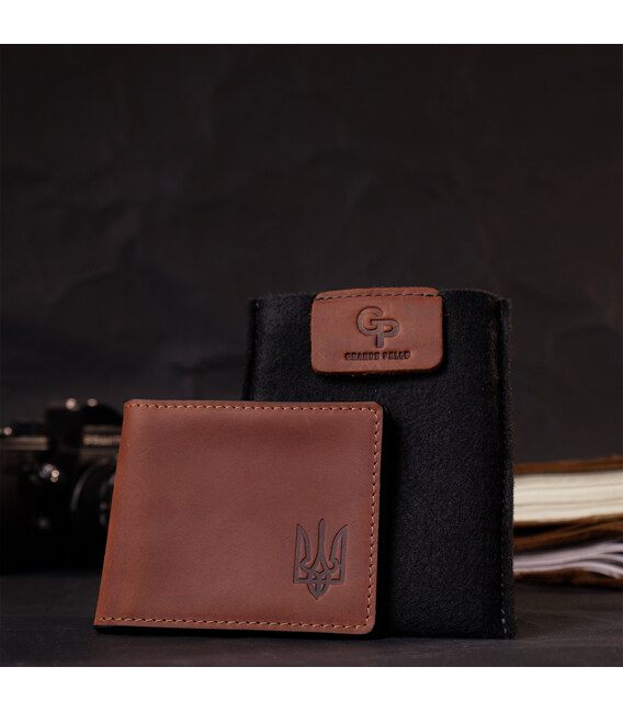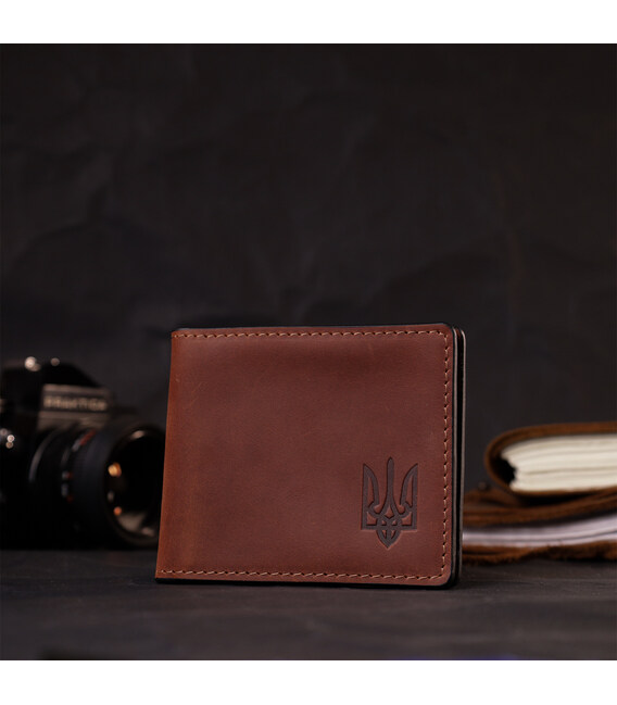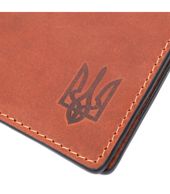 Цікаве рішення для зберігання посвідчення учасника бойових дій чи іншого документа, наприклад пропуску на роботу. Виконано обкладинку з якісної натуральної шкіри українським виробником. На лицьовій стороні виробу є тиснення у вигляді тризуба. Виглядає дуже красиво та стильно.