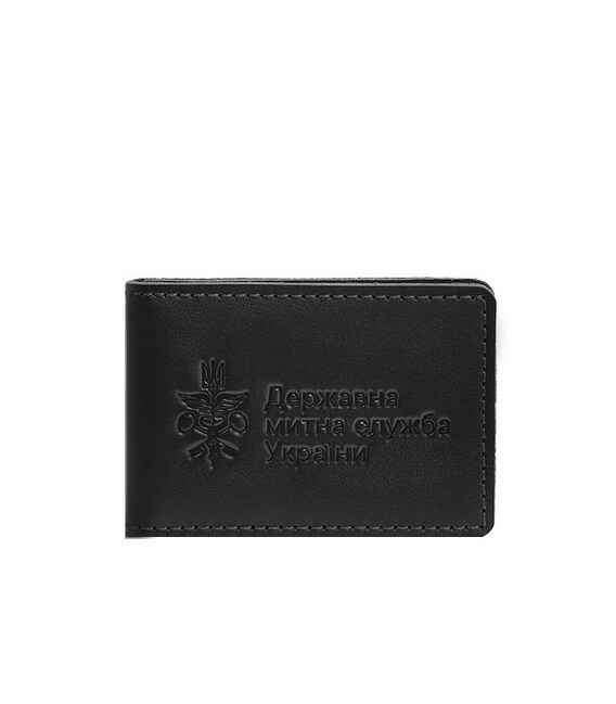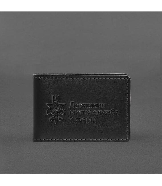 Шкіряна обкладинка для посвідчення (картки) державної митної служби (ДМС) Чорна