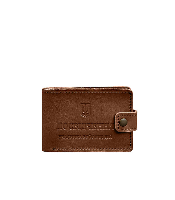 Детальніше Шкіряна обкладинка-портмоне для посвідчення учасника бойових дій (УБД картонний документ) Світло-коричнева