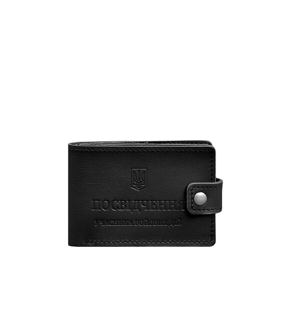 Детальніше Шкіряна обкладинка-портмоне для посвідчення учасника бойових дій (УБД картонний документ) Чорна