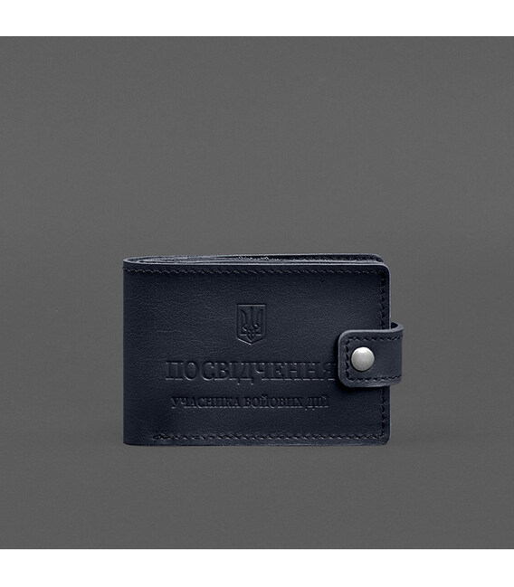 Детальніше Шкіряна обкладинка-портмоне для посвідчення учасника бойових дій (УБД картонний документ) Темно-синя