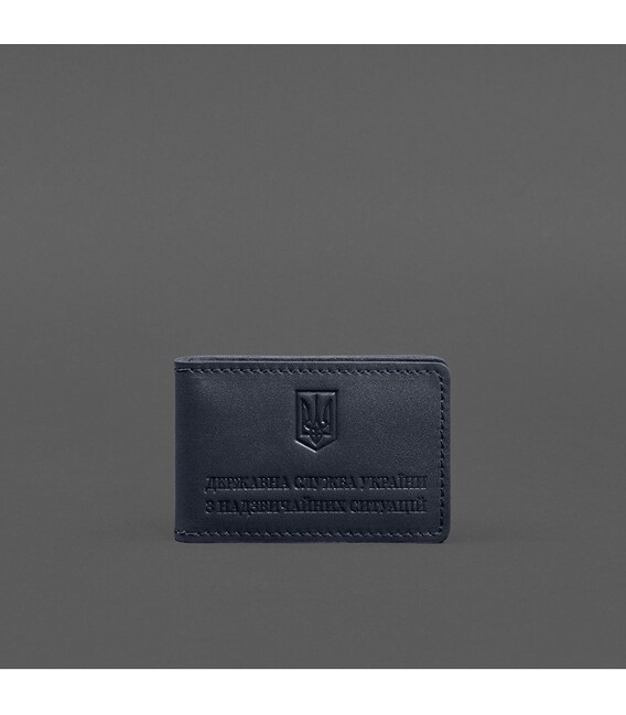 Шкіряна обкладинка на посвідчення ДСНС з кишенею синя