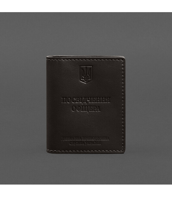 Шкіряна обкладинка на Посвідчення офіцера від бренду БланкНот спеціально розроблена для дбайливого зберігання вашого документа. Пошита з високоякісної натуральної шкіри краст Ця шкіра дуже міцна і довговічна. Тиснення на лицьовій стороні обкладинки повністю дублює оригінальний бланк документа. Вгорі розташований герб України, посередині міститься напис «Посвідчення офіцера», нижче – «Державна Прикордонна Служба України»