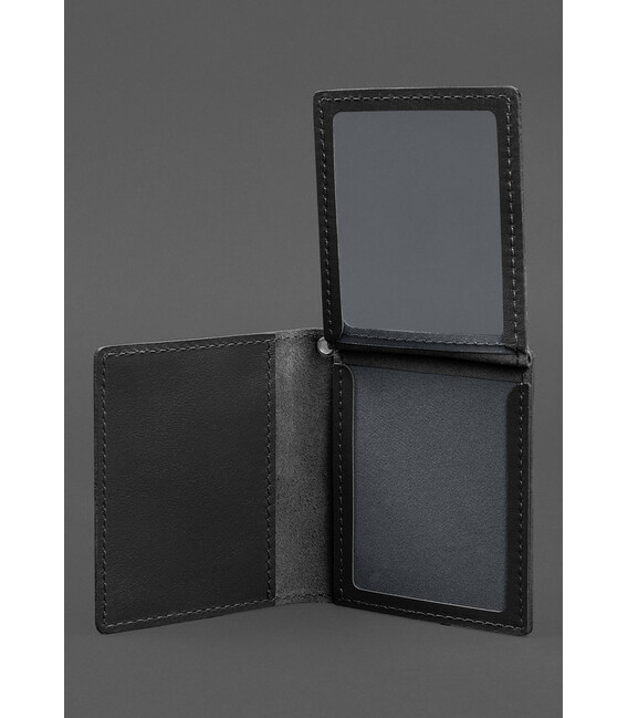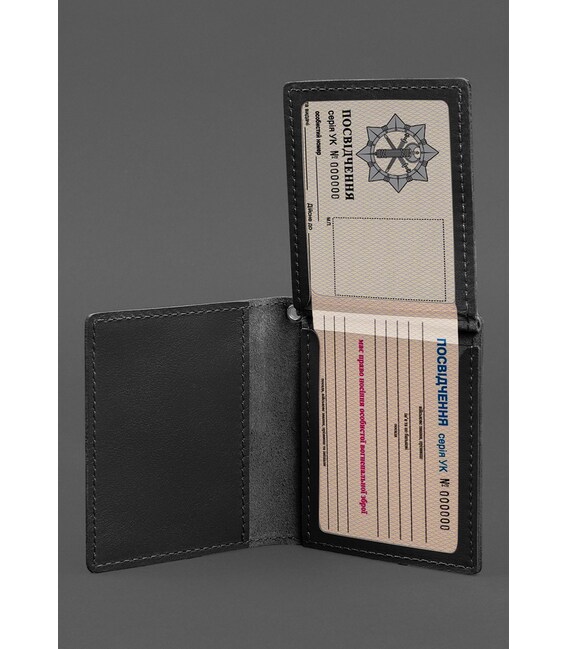 Шкіряна обкладинка для посвідчення офіцера ДПСУ (три кишені) чорна