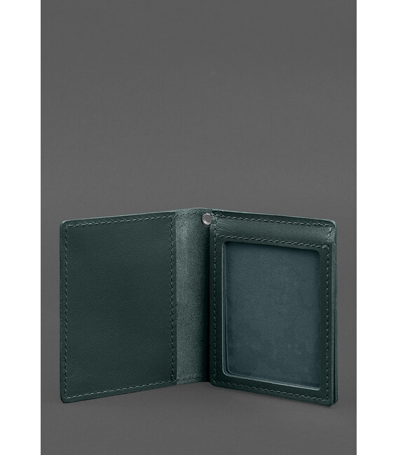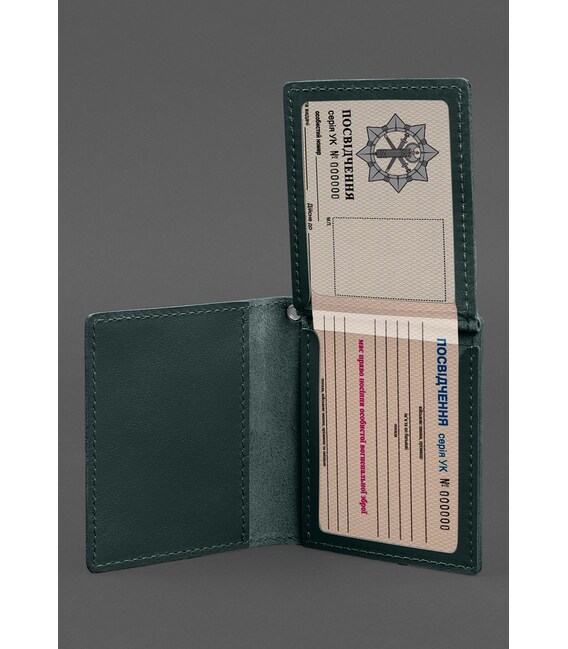 Шкіряна обкладинка для посвідчення офіцера ДПСУ (три кишені) зелена
