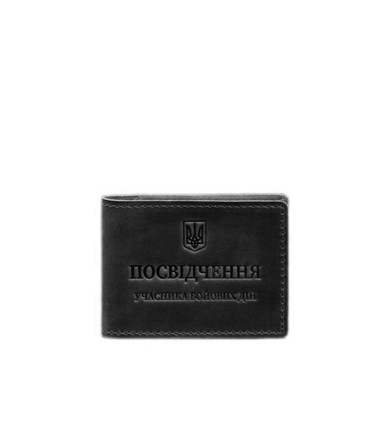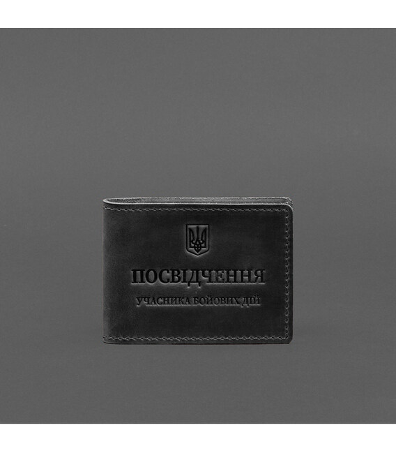Шкіряна обкладинка на посвідчення учасника бойових дій від бренду БланкНот спеціально розроблена для дбайливого зберігання вашого документа. Пошита з високоякісної натуральної шкіри crazy horse. Ця шкіра з вінтажним ефектом дуже міцна і довговічна. Тиснення на лицьовій стороні обкладинки виповнене гарячим способом, що гарантує якісний та чіткий відтиск. Вгорі розташований герб України, посередині міститься напис «Посвідчення учасника бойових дій»