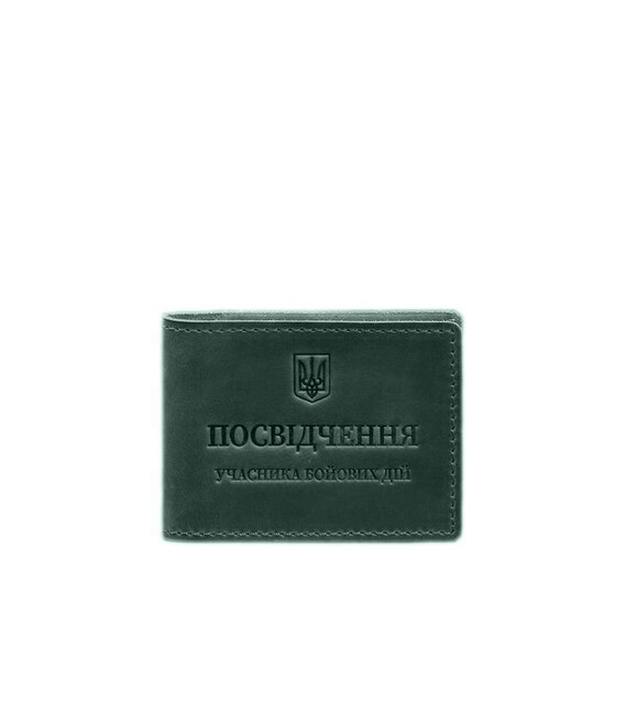 Шкіряна обкладинка для посвідчення учасника бойових дій (УБД) із кишенею для жетону зелена Crazy Horse