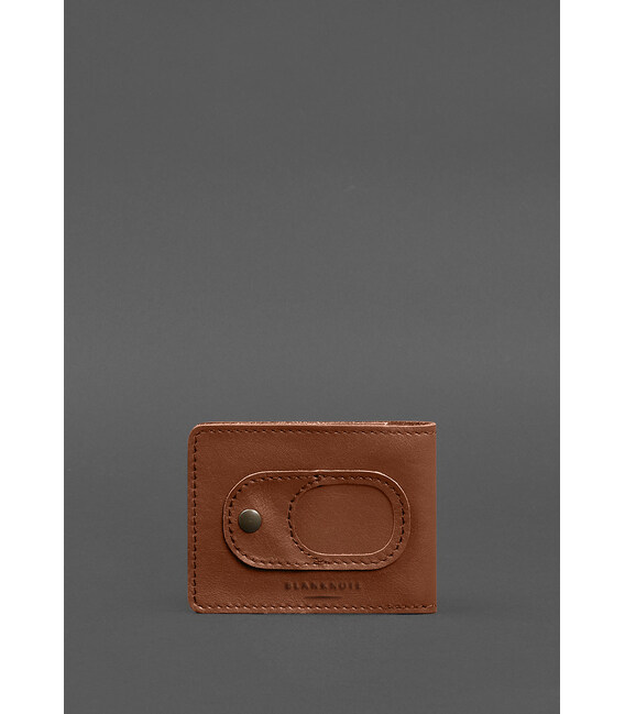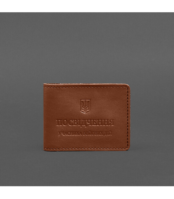 Шкіряна обкладинка для посвідчення учасника бойових дій із кишенею для жетону світло-коричнева