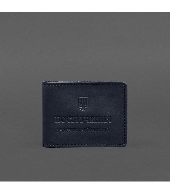 Шкіряна обкладинка для посвідчення учасника бойових дій (УБД) із кишенею для жетону темно-синя
