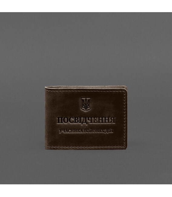 Шкіряна обкладинка для посвідчення учасника бойових дій (УБД) із кишенею для жетону темно-коричнева Crazy Horse