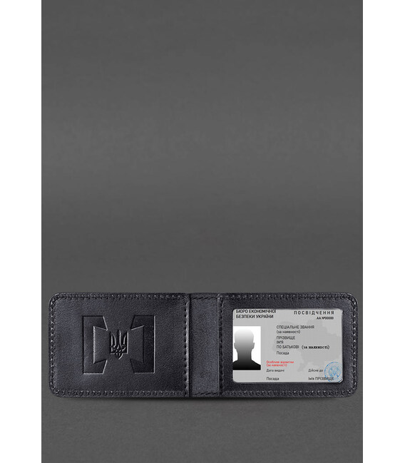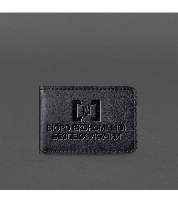 Шкіряна обкладинка для посвідчення БЕБ (Бюро економічної безпеки України) Чорна