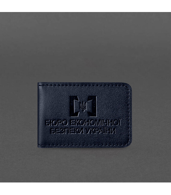 Шкіряна обкладинка для посвідчення БЕБ (Бюро економічної безпеки України) Темно-синя