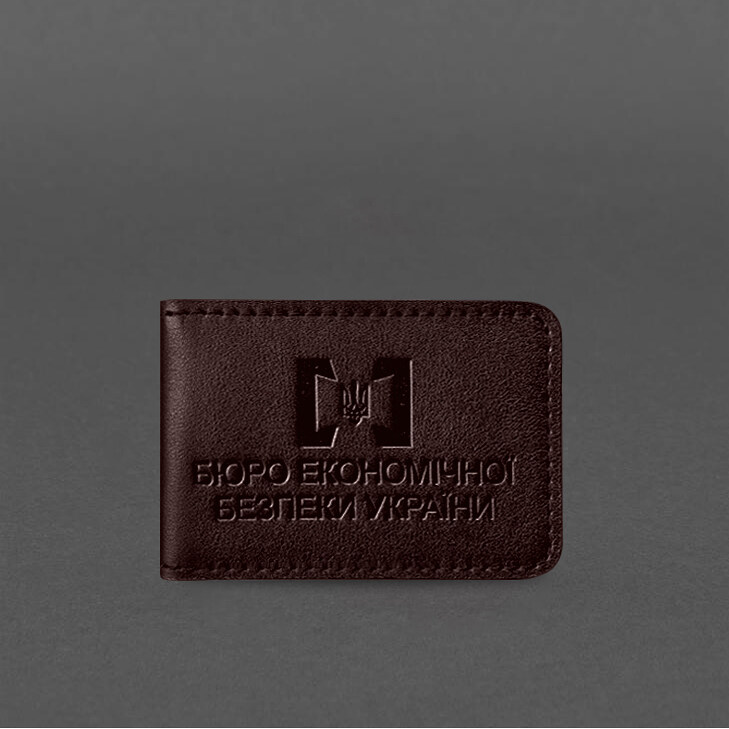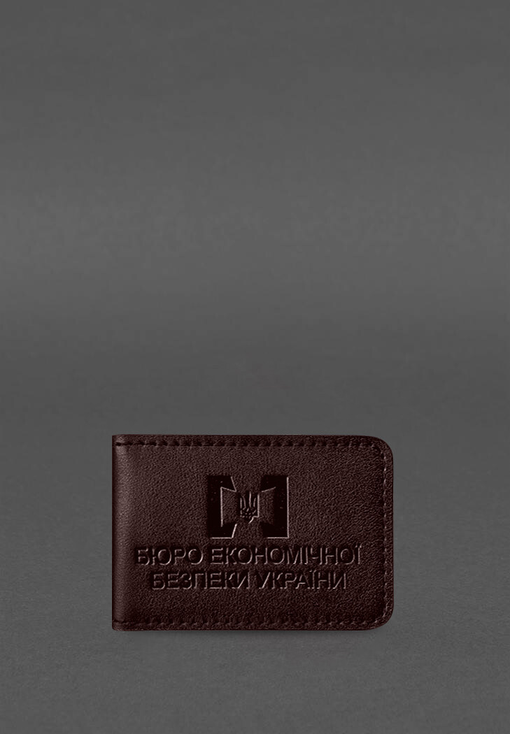 Шкіряна обкладинка для посвідчення БЕБ (Бюро економічної безпеки України) Бордова картинка, зображення, фото