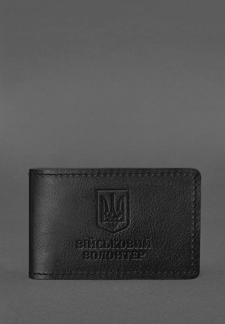 Шкіряна обкладинка на посвідчення військового волонтера від бренду БланкНот спеціально розроблена для дбайливого зберігання вашого документа. Пошита з високоякісної натуральної шкіри краст. Ця шкіра дуже міцна і довговічна. На лицьовій стороні обкладинки розташовано напис “Військовий волонтер”.