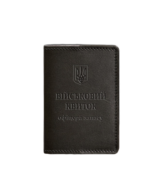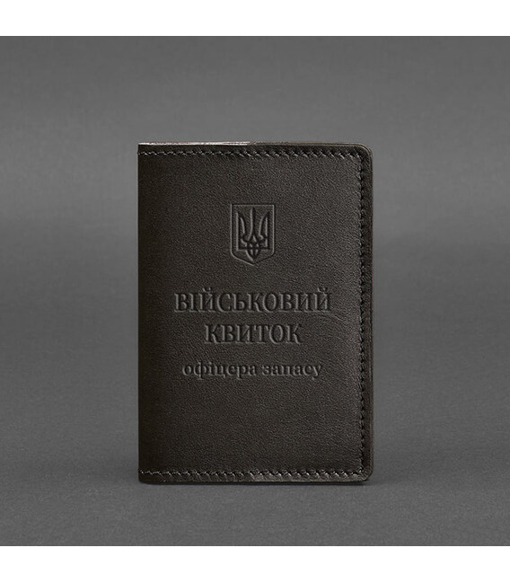 Шкіряна обкладинка на військовий квиток офіцера запасу від бренду БланкНот спеціально розроблена для дбайливого зберігання вашого документа. Пошита з високоякісної натуральної шкіри краст Ця шкіра дуже міцна і довговічна. Тиснення на лицьовій стороні обкладинки повністю дублює оригінальний бланк документа. Вгорі розташований герб України, посередині міститься напис «Військовий квиток офіцера запасу»