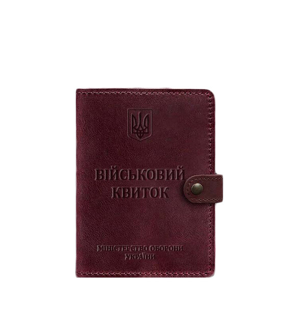 Шкіряна обкладинка-портмоне для військового квитка 15.0 бордова Crazy Horse