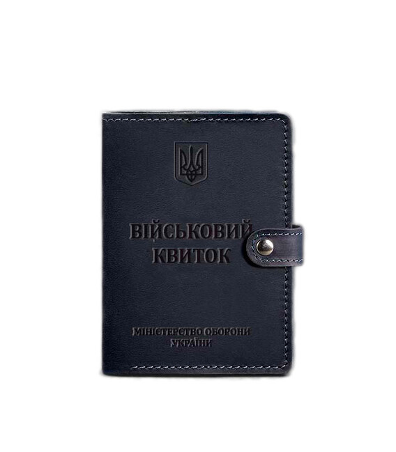 Шкіряна обкладинка-портмоне на Військовий квиток від бренду БланкНот спеціально розроблена для дбайливого зберігання вашого документа. Пошита з високоякісної натуральної шкіри crazy horse. Ця шкіра з вінтажним ефектом дуже міцна і довговічна. Тиснення на лицьовій стороні обкладинки повністю дублює оригінальний бланк документа. Вгорі розташований герб України, посередині міститься напис “Військовий квиток “ і в нижній частині тиснення “Міністерство оборони України”.