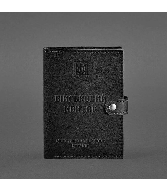 Шкіряна обкладинка-портмоне на Військовий квиток від бренду БланкНот спеціально розроблена для дбайливого зберігання вашого документа. Пошита з високоякісної натуральної шкіри краст. Ця шкіра дуже міцна і довговічна. Тиснення на лицьовій стороні обкладинки повністю дублює оригінальний бланк документа. Вгорі розташований герб України, посередині міститься напис “Військовий квиток“ і в нижній частині тиснення “Міністерство оборони України”..