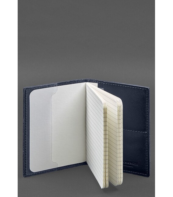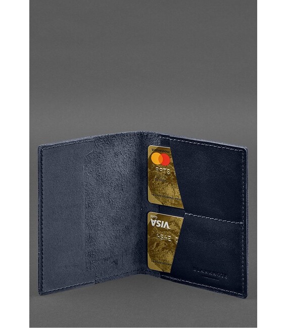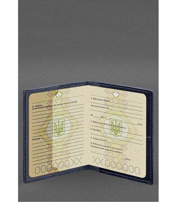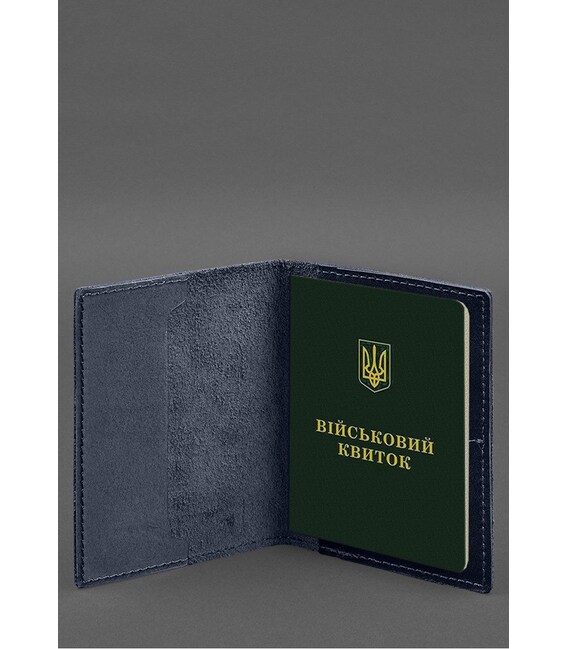 Шкіряна обкладинка для військового квитка з кишенями 7.2 синій краст