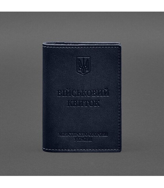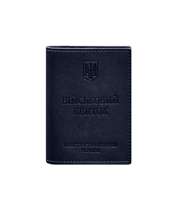 Шкіряна обкладинка на військовий квиток від бренду БланкНот спеціально розроблена для дбайливого зберігання вашого документа. Пошита з високоякісної натуральної шкіри краст Ця шкіра дуже міцна і довговічна. Тиснення на лицьовій стороні обкладинки повністю дублює оригінальний бланк документа. Вгорі розташований герб України, посередині міститься напис «Військовий квиток» і в нижній частині тиснення “Міністерство оборони України”
