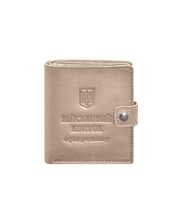Шкіряна обкладинка-портмоне для військового квитка офіцера запасу (широкий документ) Світло-бежевий